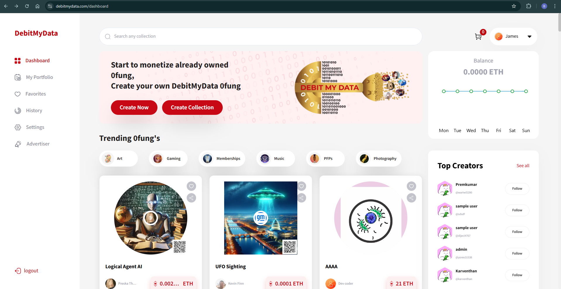 Log in to your account and go to the DebitMyData Dashboard . On the dashboard, locate and click the Create Now button. This will redirect you to the Create 0fung page.