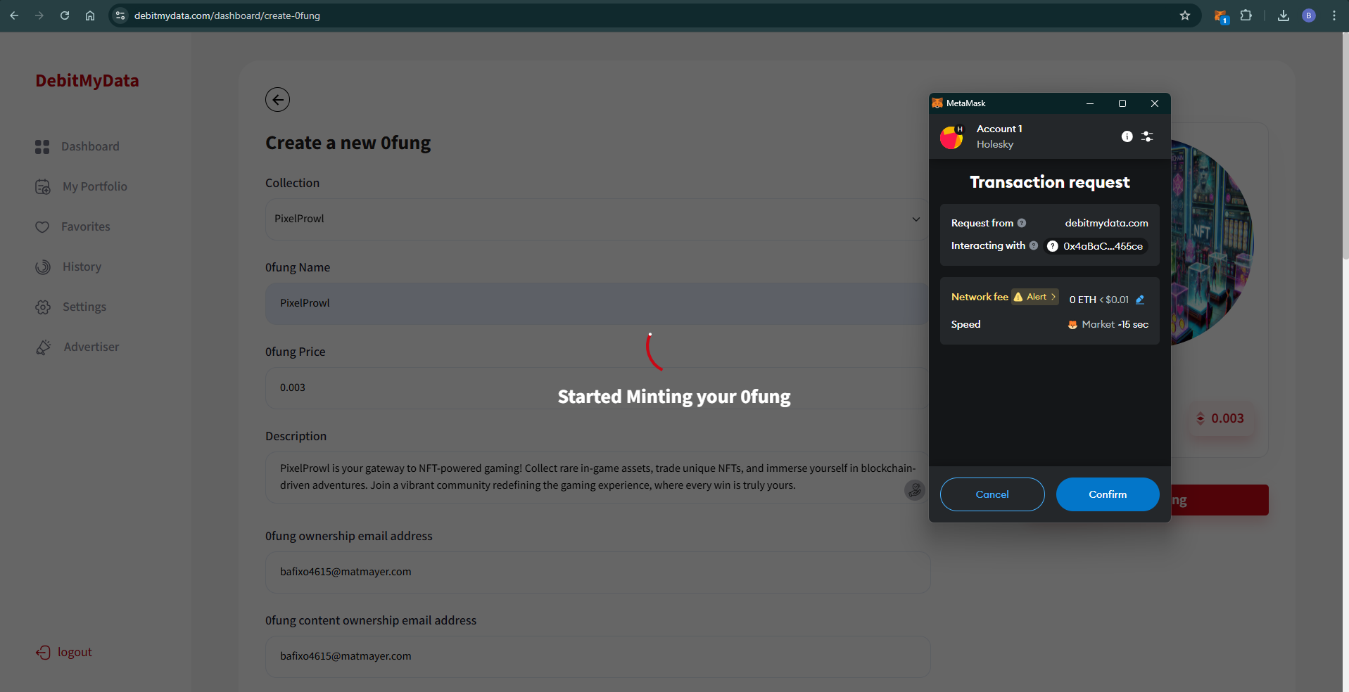 Before starting this process, ensure you have successfully completed the Create a New 0fung Collection setup. Its a prerequisites for creating individual 0fung assets.